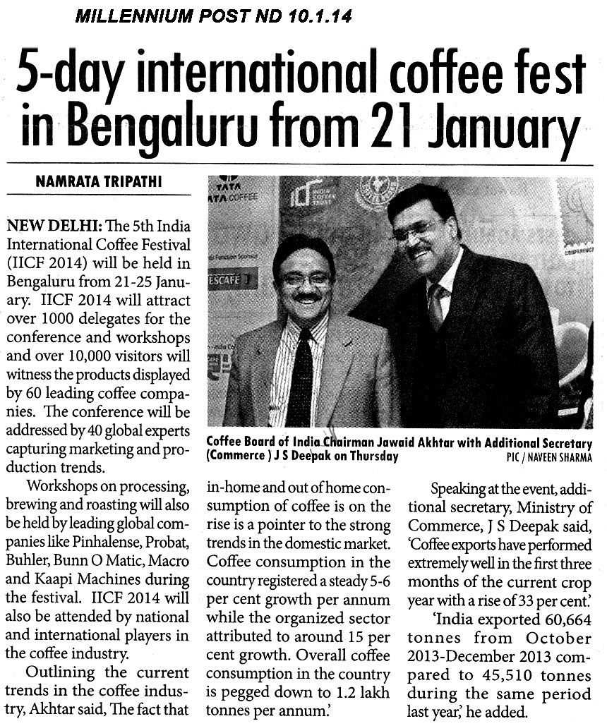 5- Day International Coffee Festival in Bengaluru From 21st january - Millennium Post